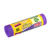 Мешки для мусора Avikomp Prestige «Полосатики», с завязками, 60 л, рулон 10 шт, желто-фиолетовые