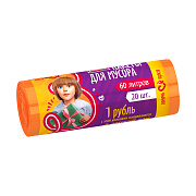 Мешки для мусора Avikomp «Помочь просто», повышенной прочности, 11 мкм, 60 л, рулон 20 шт, оранжевые