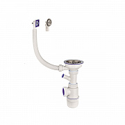 Сифон двойной VIRPlast Элит, 3 1/2" x 40, с отводом, с нержавеющими чашками, с переливом, 800 мм