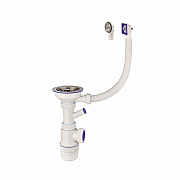 Сифон VIRPlast Элит, 3 1/2" x 40 мм, с нержавеющей чашкой d 114, с переливом, гофротруба 800 мм