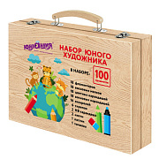 Набор ЮНОГО ХУДОЖНИКА "ANIMALS" для рисования и творчества в кейсе ЮНЛАНДИЯ, 100 предметов, 665675