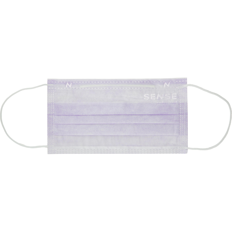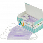 Маска медицинская 3-х сл., резинка, лиловый, Sense, картон 50шт/уп