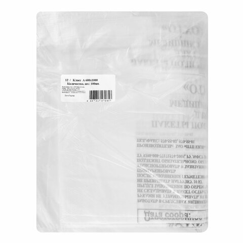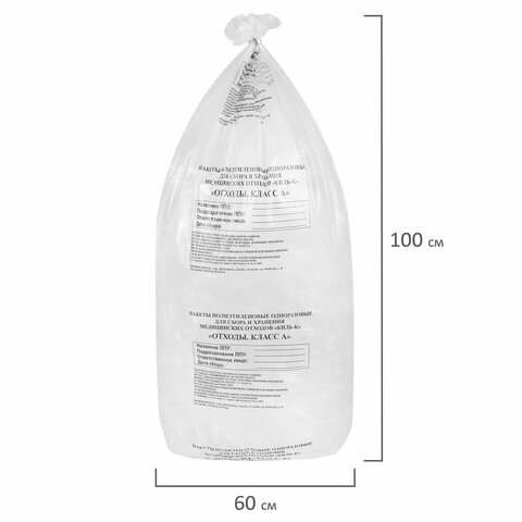 Пакеты для медицинских отходов КОМПЛЕКТ 100 шт., класс А (белые) 100 л, 60х100 см, 12 мкм, ПТП Киль