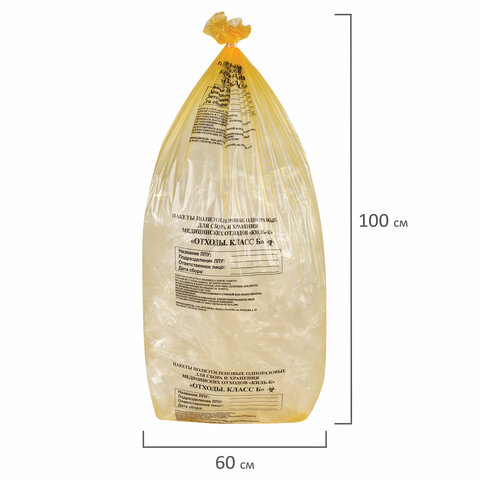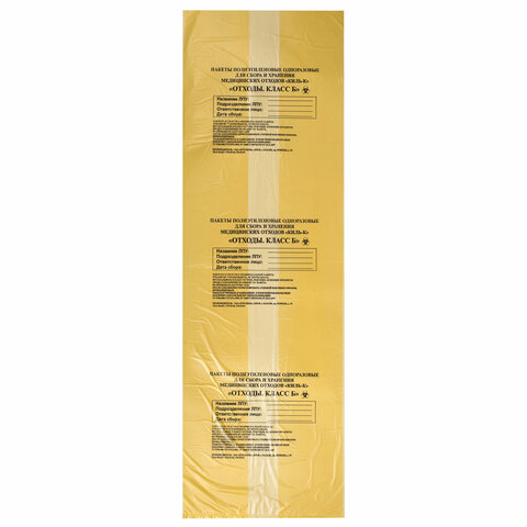 Пакеты для медицинских отходов КОМПЛЕКТ 100 шт., класс Б (желтые) 100 л, 60х100 см, 12 мкм, ПТП Киль