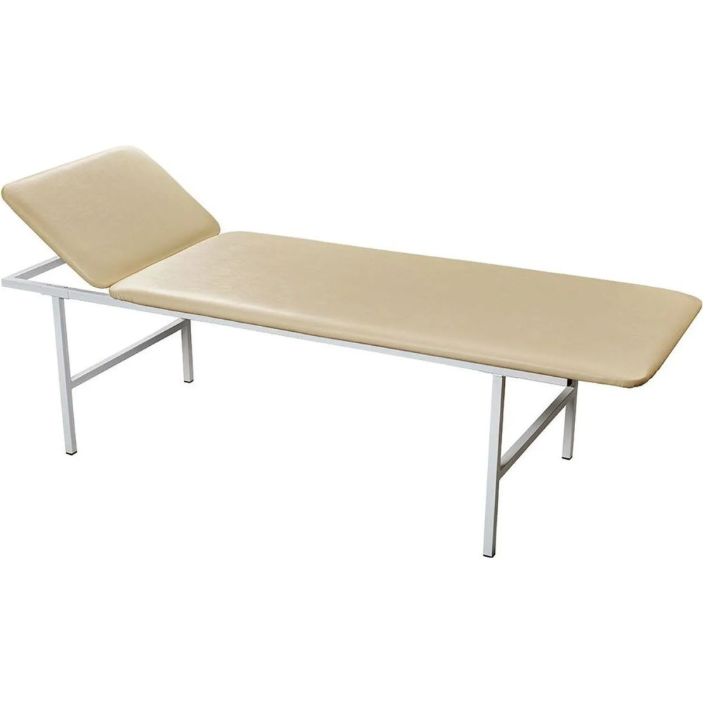 Кушетка медицинская, каркас — стальные трубы квадратного сечения 25×25×1.5 мм. Лежак кушетки двухсекционный, изготовлен из ДСП 16 мм и поролона 20 мм. Головная секция регулируется с помощью ступенчатого механизма ’Rostomat’. Обивка — искусственная кожа, полумягкая, светлого оттенка, устойчивая к истиранию и воздействию дезинфицирующих средств. Нагрузка на лежак — 180 кг. Поставляется в разобранном виде. Товар имеет регистрационное удостоверение Росздравнадзора на медицинское изделие.