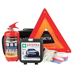 Набор автомобилиста "На техосмотр": аптечка (приказ 260н), огнетушитель ОП-2, знак, сумка, 3867