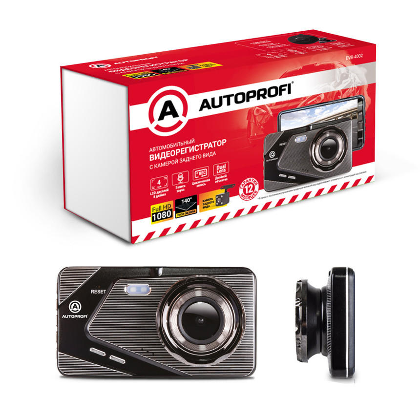 Видеорегистратор Autoprofi, 1080Р, угол обзора 140°, дисплей 4", камера заднего вида, память до 128Gb