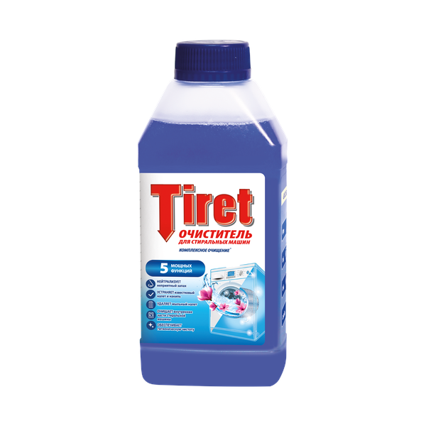 Очиститель для стиральных машин Tiret комплексно очищает вашу стиральную машину благодаря 5 мощным функциям: