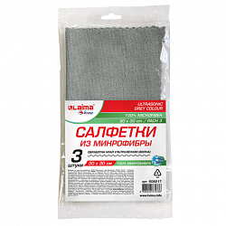 Салфетки из микрофибры 30х30см, КОМПЛЕКТ 3шт "ULTRASONIC GREY COLOUR PACK 3", LAIMA HOME, 608217