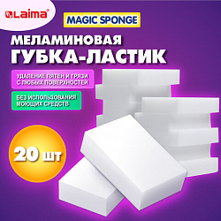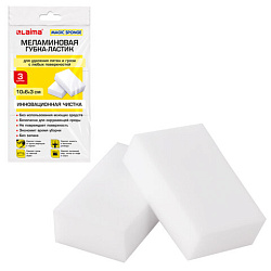 Губка-ластик МЕЛАМИНОВАЯ для удаления пятен, 100х60х30 мм, КОМПЛЕКТ 3 шт., полибэг, LAIMA, 605035