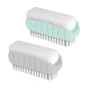 Компактная двусторонняя щетка для рук, ступней и ногтей. Имеет жесткую щетину и пемзу для деликатного снятия огрубевшей кожи. Оснащена удобной ручкой с рельефной поверхностью для упора. Размеры: 3,8 х 8 х 3см