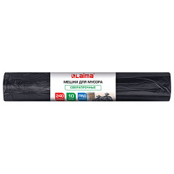 Мешки для мусора 240л черные в рулоне 10 штук сверхпрочные, ПВД 100 мкм, 90x135см, LAIMA, 702684
