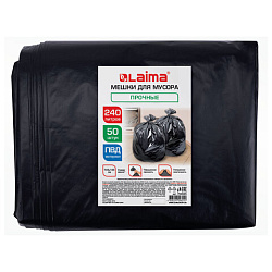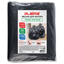 Мешки для мусора 120л черные в пласте 50 штук особо прочные, ПВД 40 мкм, 70x110см, LAIMA, 702671