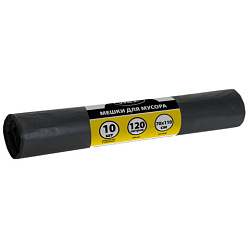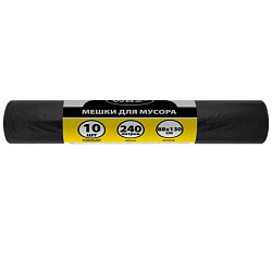 Мешки для мусора 360л черные в пласте 10 штук особо прочные, ПВД 60 мкм, 110x140см, LAIMA, 702687