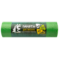 Мешки для раздельного сбора мусора 120л зеленые в рулоне 20шт ПВД 20мкм 70х110см РОМАШКА ЕЛР-ВР-120З