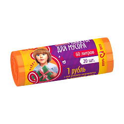 Мешки для мусора Avikomp «Помочь просто», повышенной прочности, 11 мкм, 60 л, рулон 20 шт, оранжевые