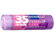 Чистюля пакеты для мусора в рулоне Стандарт с завязками на 35 л, 14 шт, 150 гр