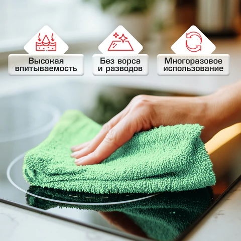 Изготовлена из микрофибры плотностью 180 г/м2. Размер - 30х30 см. Поставляется в пакете с европодвесом.