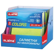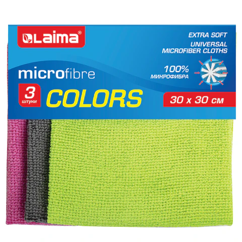 Салфетки из МИКРОФИБРЫ универсальные, 30х30 см, КОМПЛЕКТ 3 шт., ассорти (розовый, зеленый, серый), 180 г/м2, LAIMA, 700054