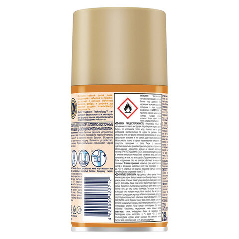 Использовать только по назначению согласно инструкции. Не разбирать и не давать детям! Беречь от источников тепла, искр, открытого огня и других источников воспламенения. Не курить. Не распылять вблизи открытого огня или других источников воспламенения. Не нарушать целостности упаковки и не сжигать, даже после использования. Использовать только в хорошо проветриваемых помещениях. Не допускать попадания в глаза. Лицам с повышенной чувствительностью к ароматам применять средство с осторожностью. Использование освежителя воздуха не заменяет надлежащую гигиену. ПРИ ПОПАДАНИИ В ГЛАЗА: осторожно промыть глаза водой в течение нескольких минут. Снять контактные линзы, если Вы ими пользуетесь и если это легко сделать. Продолжить промывание глаз. Если раздражение глаз не проходит, обратиться за медицинской помощью.
