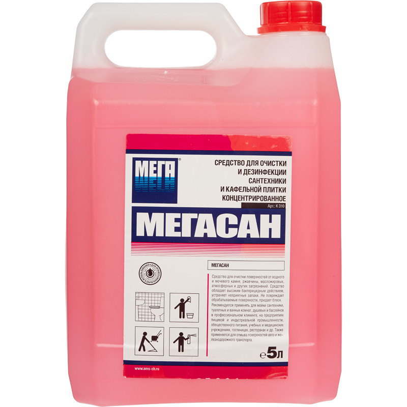 Средство для очистки и дезинфекции сантехники и кафельной плитки МЕГАСАН концентрированное