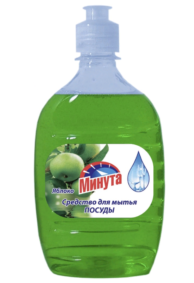 Средство для мытья посуды Минута Яблоко - качественное и недорогое средство для мытья посуды. Эффективно удаляет с посуды жир и грязь. Отлично смывается даже холодной водой. Сохраняет кожу рук.