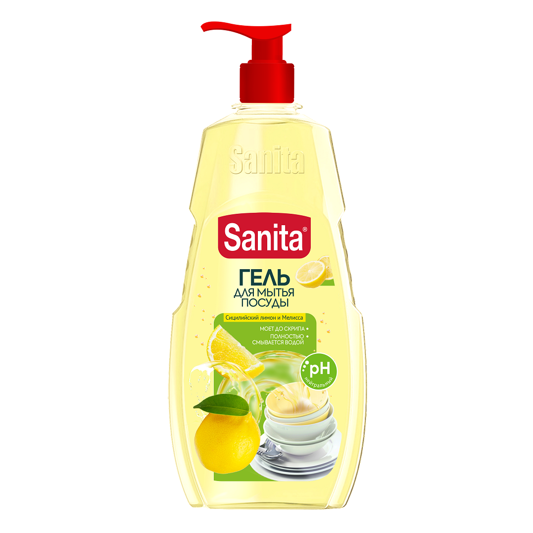 Гель для мытья посуды Sanita сицилийский лимон и мелисса, 900 гр
