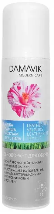 Свежий аромат нейтрализует неприятные запахи и предотвращает их образование.Обладает бактерицидным и противогрибковым действием.Подходит для всех видов обуви из кожи и текстиля.