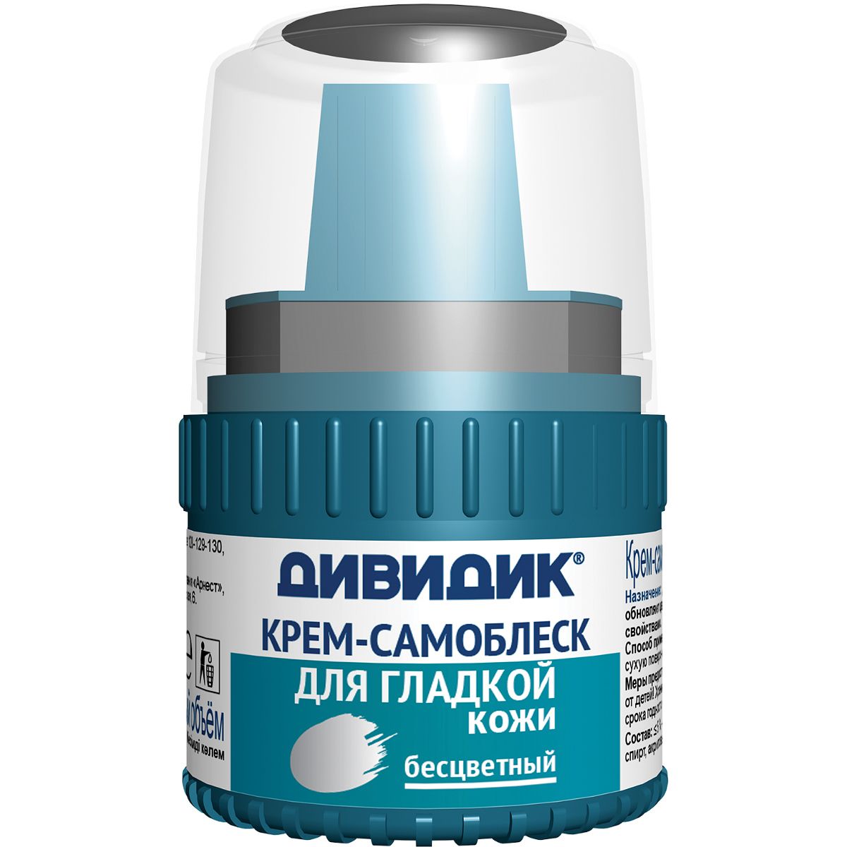 Крем для обуви Дивидик Самоблеск в пластиковой банке с намазком для гладкой кожи бесцветный 55 мл