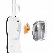 Если отсоединить ручку и щетку, то парогенератор превратиться в ручной пароочиститель. Им можно чистить различные поверхности и предметы: плиты, сантехнику, СВЧ-печи. Для усиления воздействия в комплекте есть нейлоновые щетки и скребок. Насадка-скребок - универсальная. Присоедините ее, чтобы помыть окна, зеркала и кафельную плитку, с ней прибор становится стеклоочистителем. Она же помогает отпарить одежду и очистить обивку мягкой мебели. При отпаривании рекомендуется надеть на насадку тряпку: в нее будут впитываться конденсат и удаляемые загрязнения.