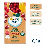 ФрутоНяня 500мл Компот Вишня-Малина с 3-х лет