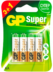 Батарейки GP Super, AA (LR6,15А), алкалиновые, пальчиковые, КОМПЛЕКТ 4 шт, ПРОМО 3+1,, 15A3/1-2CR4