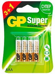 Батарейки GP Super, AAA (LR03,24А), алкалиновые, мизинчиковые, КОМПЛЕКТ 4 шт, ПРОМО 3, 24A3/1-2CR4