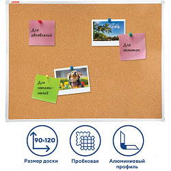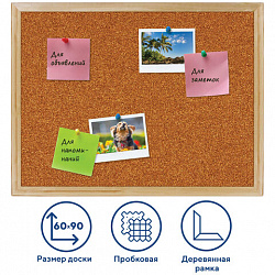 Доска пробковая для объявлений 60х90 см, деревянная рамка, ГАРАНТИЯ 10 ЛЕТ, РОССИЯ, BRAUBERG, 236860