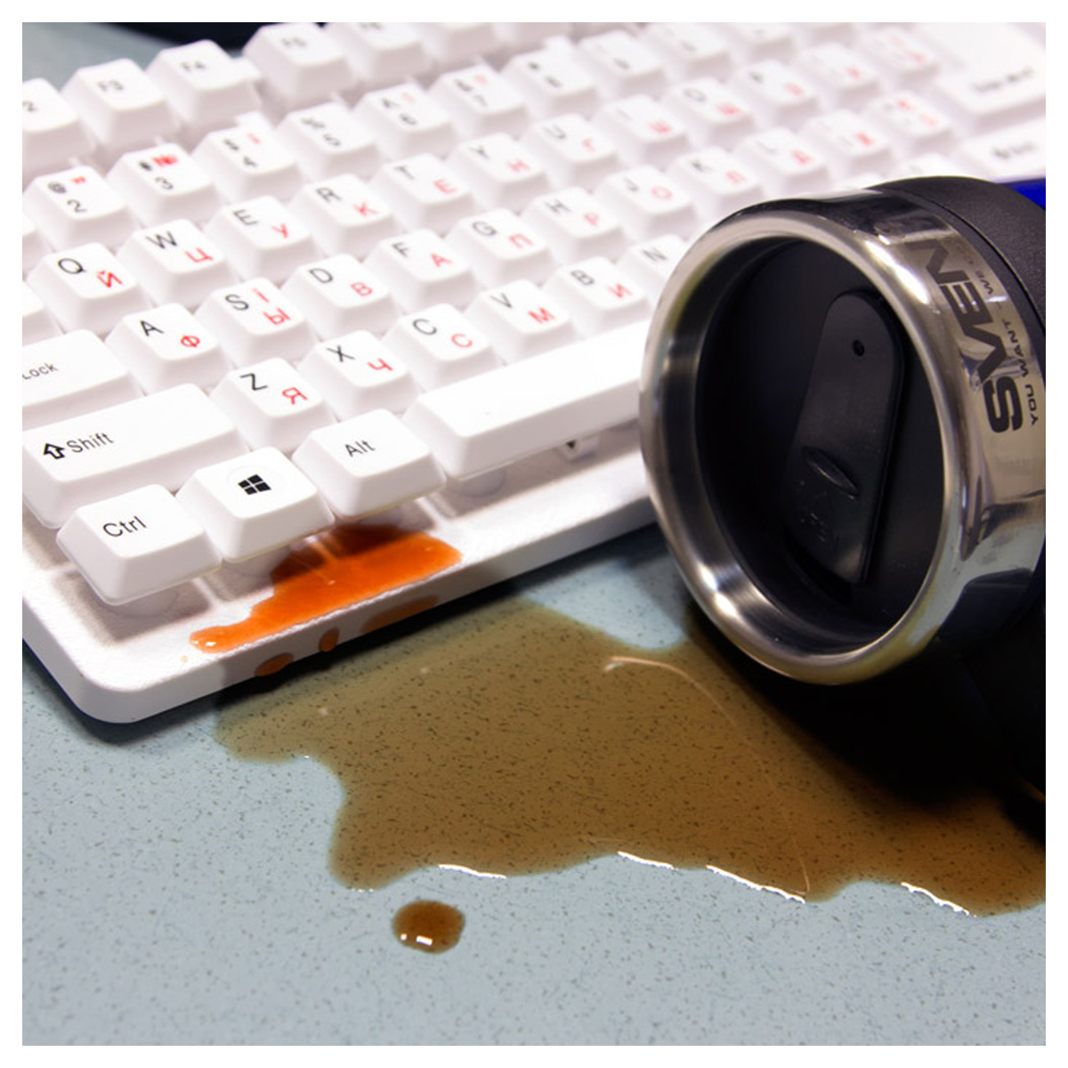 Надежную конструкцию клавиатуры оценят любители попить кофе на рабочем месте: для влагозащищенной SVEN Standard 301 пролитые напитки не страшны.
