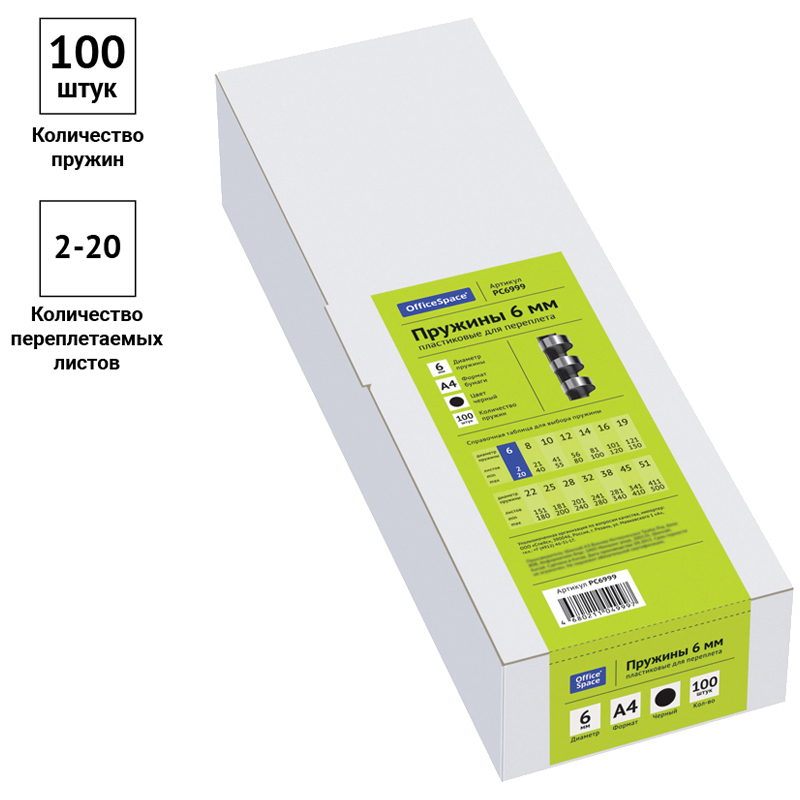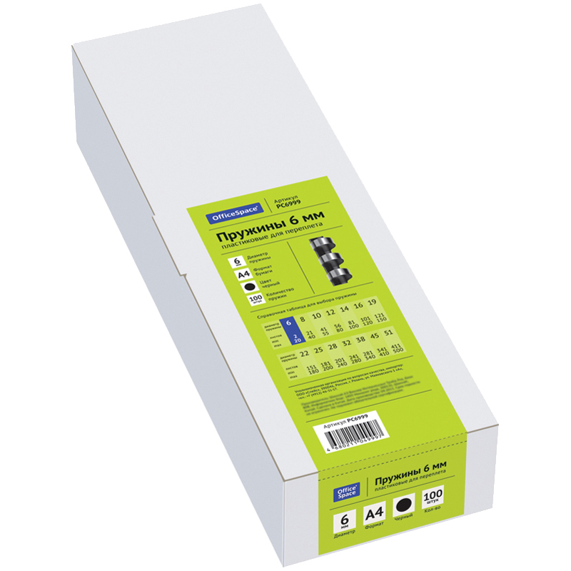 Пружины пластик D=06мм OfficeSpace, черный, 100шт.