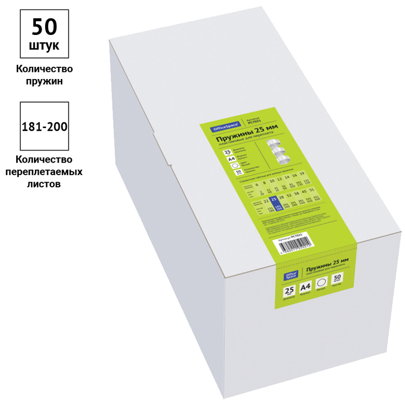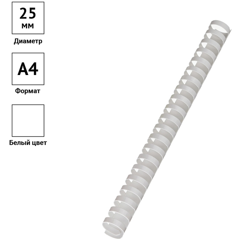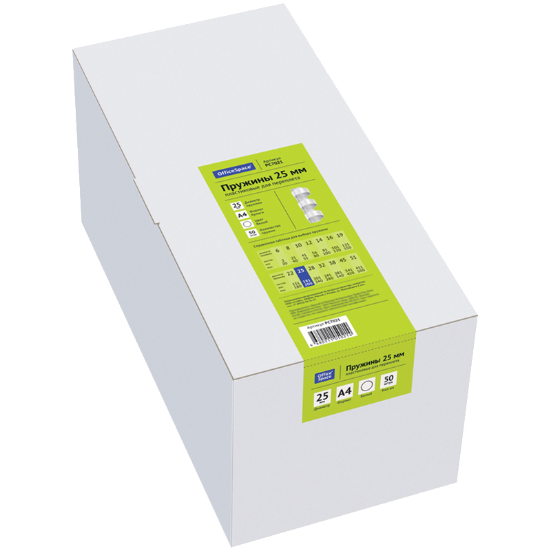 Пружины пластик D=25мм OfficeSpace, белый, 50шт.