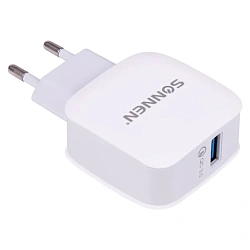 Быстрое зарядное устройство сетевое (220В) SONNEN, порт USB, QC3.0,выходной ток 3А, белое, 455506
