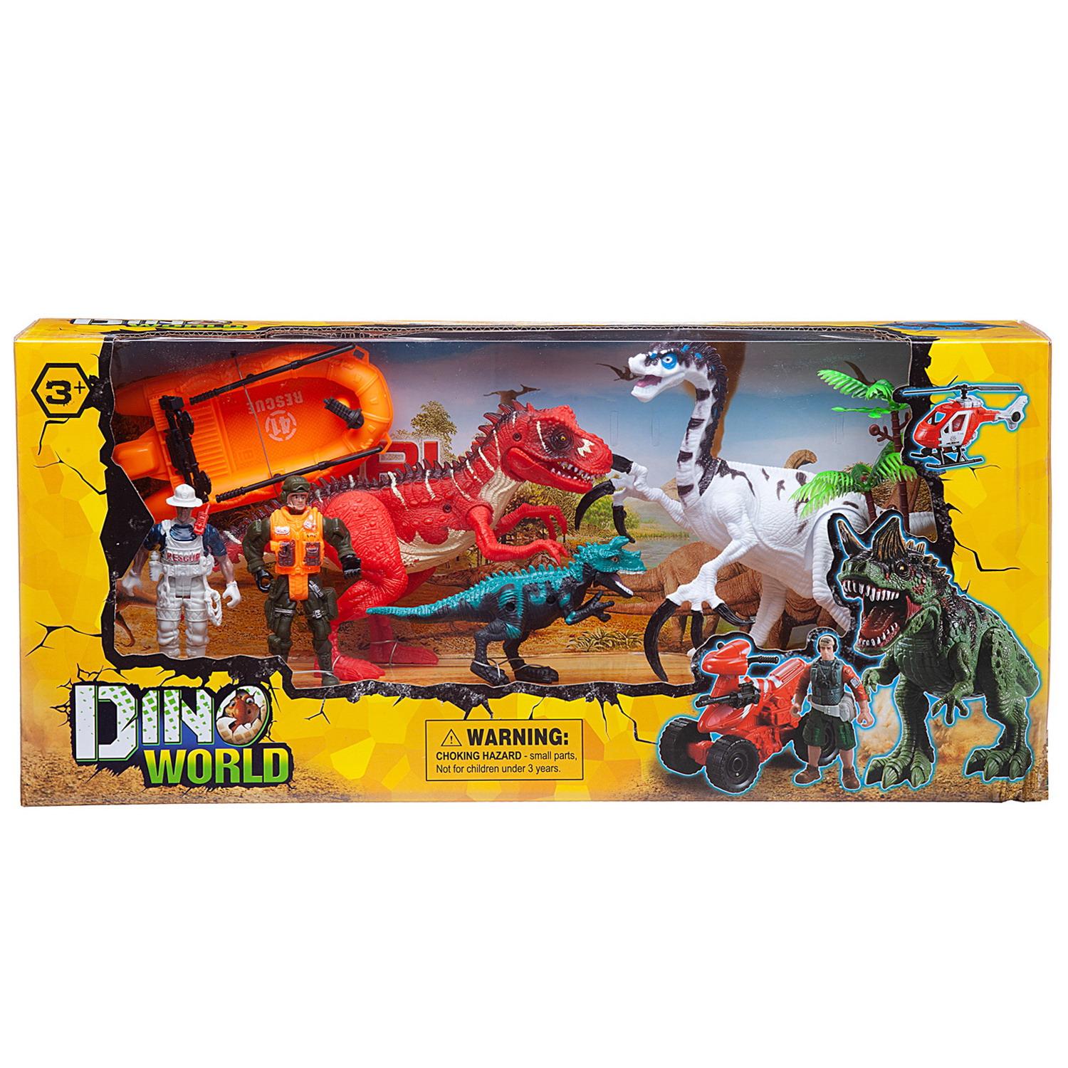 Игровой набор Junfa "Мир динозавров" (2 больших динозавра, маленький динозавр, 2 фигурки человека, лодка, акссесуары)