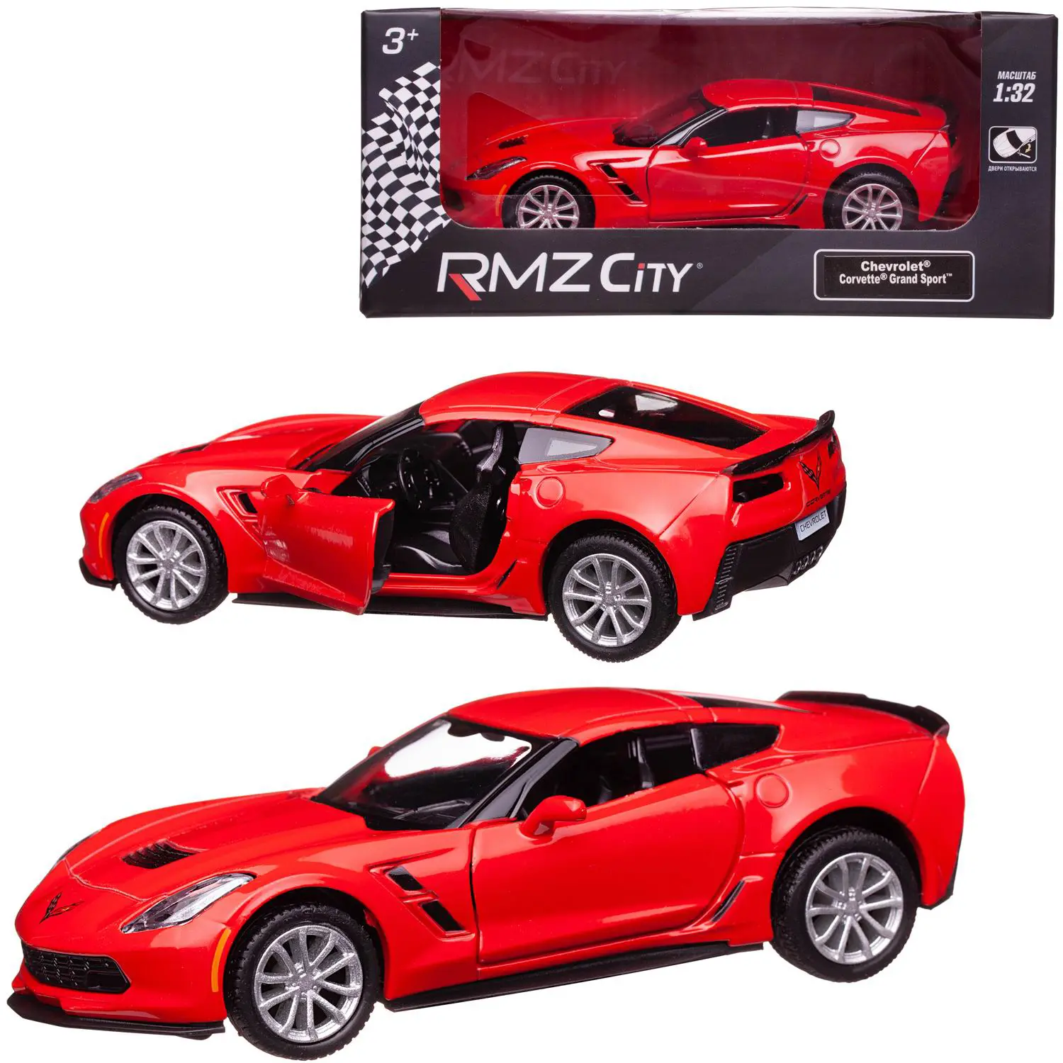 Машина металлическая RMZ City серия 1:32 Chevrolet Corvette Grand Sport, красный цвет, двери открываются