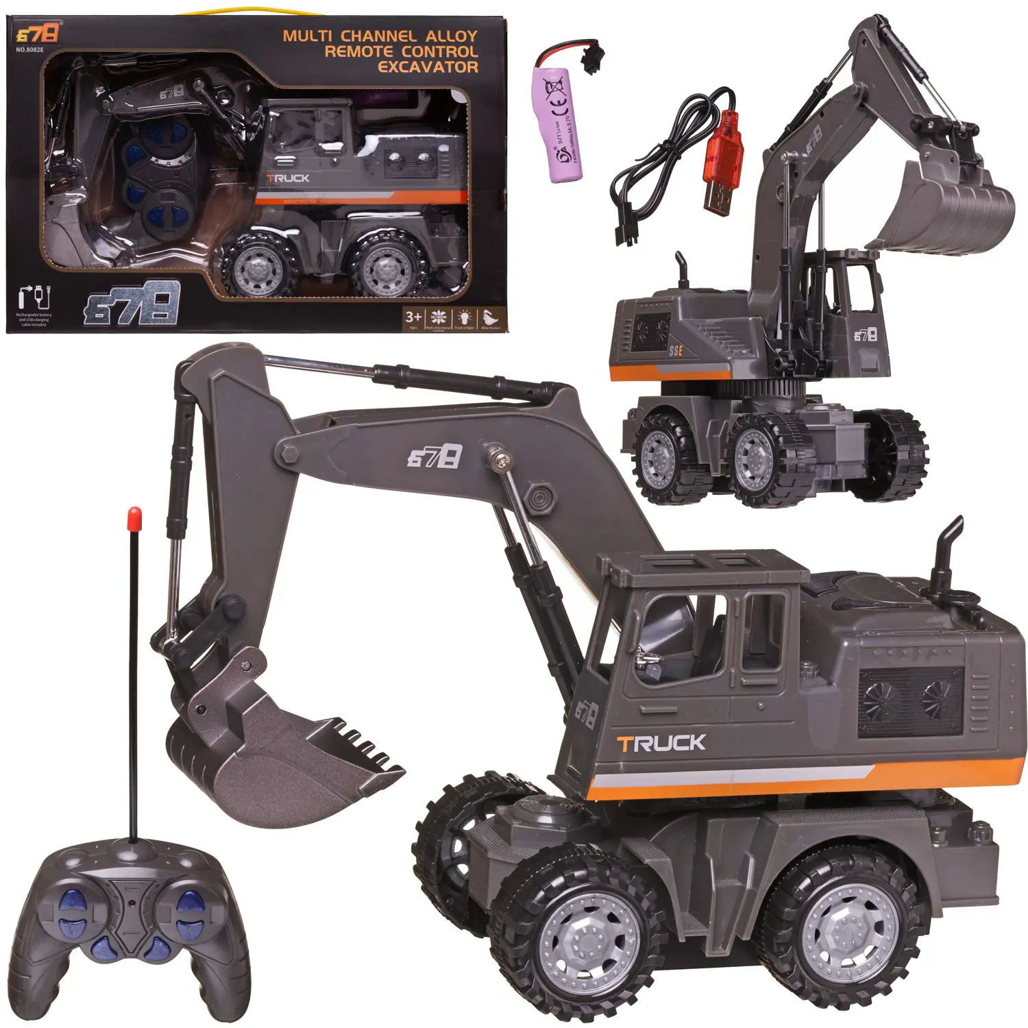 В комплекте: экскаватор, пульт, fккумулятор, USB кабель для зарядки.