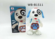 Веселая танцующая собака движется под музыку и собачий лай, периодически двигает ушками и лапками. У нее светятся и переливаются уши, лапки и отпечаток лапки на животике.