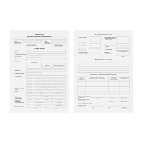 Вид бланка: Карточка гражданина, подлежащего воинскому учету