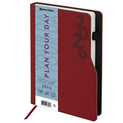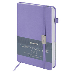 Ежедневник датированный 2026 А5 138x213 мм, BRAUBERG "Foliage", под кожу, гибкий, сиреневый, 117131