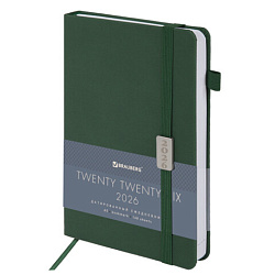 Ежедневник датированный 2026 А5 138x213 мм, BRAUBERG "Foliage", под кожу, гибкий, зеленый, 117128