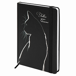 Ежедневник недатированный с резинкой А5 145х203 мм, BRAUBERG, твердый, 160 л., "Black cat", 116305
