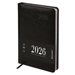 Ежедневник датированный 2026 А5 138х213 мм, BRAUBERG "ArtGallery", под кожу, нашивка, черный, 117405