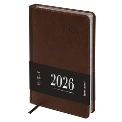 Ежедневник датированный 2026, А5, 138х213 мм, BRAUBERG "Impression", под кожу, коричневый, 117511