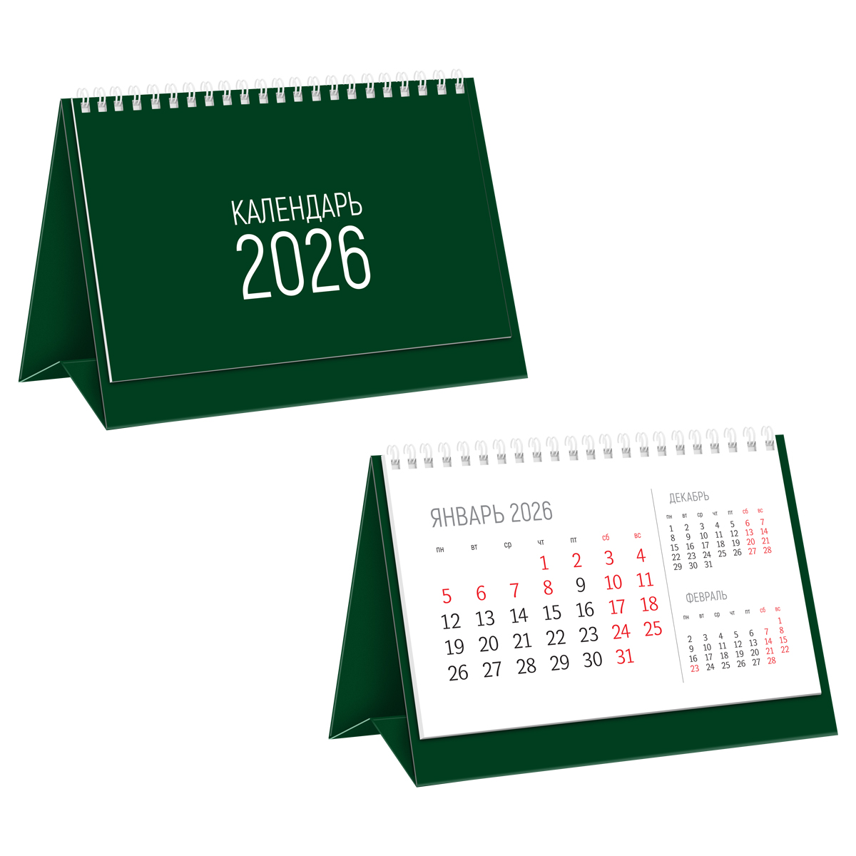 Календарь-домик настольный, твердая подложка, 180*110 мм BG "Green", на гребне, 2026г.