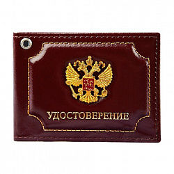 Обложка для удостоверения натуральная кожа шик, 3D герб + тиснение, темно-бордовая, BRAUBERG, 238199